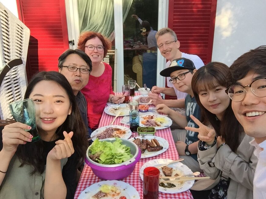Bild (DIT): Still possible at the time: host family and international students at a barbecue together in 2019