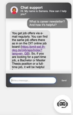 Computergestützte Chatbots sind technische Dialogsysteme, die auf natürlicher Spracherkennung basieren und werden eingesetzt, um Benutzeranfragen automatisiert und ohne direkten menschlichen Eingriff in Echtzeit zu beantworten. Eine weitere studentische Projektgruppe entwarf hierzu einen umfangreichen Fragenkatalog rund ums Studium am Campus Cham.